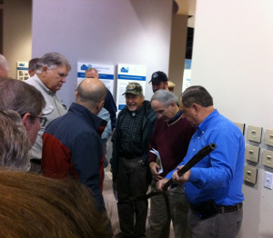 This morning, I attended a presentation at the Charlotte Museum of History on the Mecklenburg Longrifle, a fine and highly sought-after weapon produced here in the Charlotte, North Carolina, area in the 18th and early 19th centuries. Michael Briggs, the author of The Longrifle Makers of Guilford County and The Longrifle Makers of Forsyth County & Davidson County, displayed some breathtaking pieces from his personal collection, and generously identified and discussed longrifles that audience members brought in.