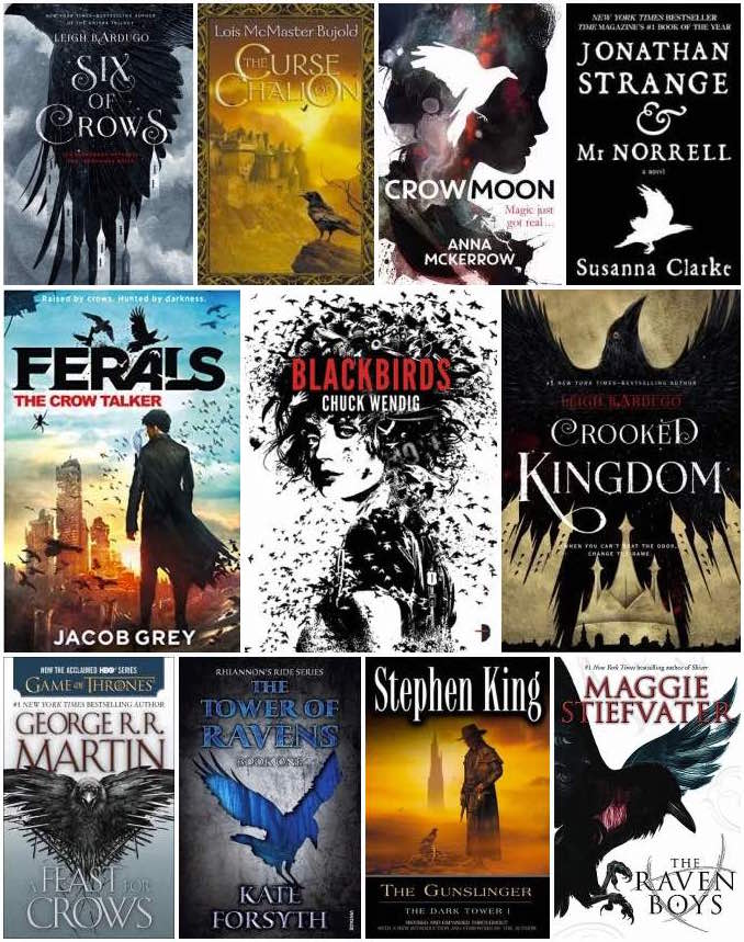 You don’t have to look far on a fantasy shelf to see a corvid, or a mention of one. Above are just a few examples of fantasy covers littered with crows, ravens and blackbirds. Here are some fantasy book titles that also involve them: