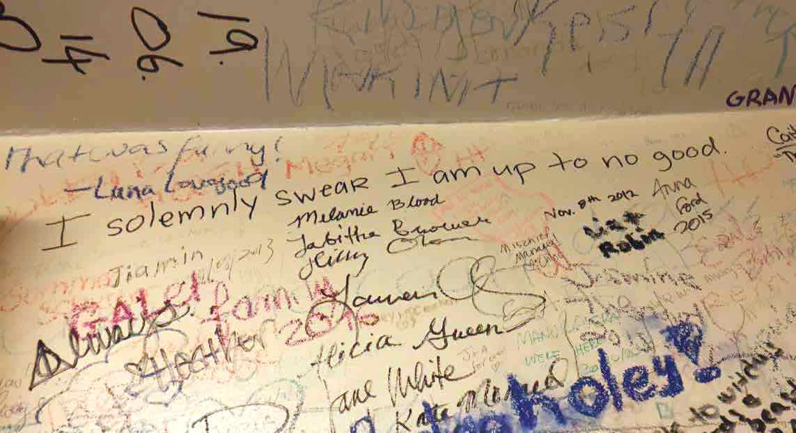 Harry Potter Graffiti ” I solemnly swear I am up to no good”, The Elephant House, Edinburgh. Photo by Nicola Alter (Available for Use Under Creative Commons Attribution-ShareAlike License CC BY SA 4.0)